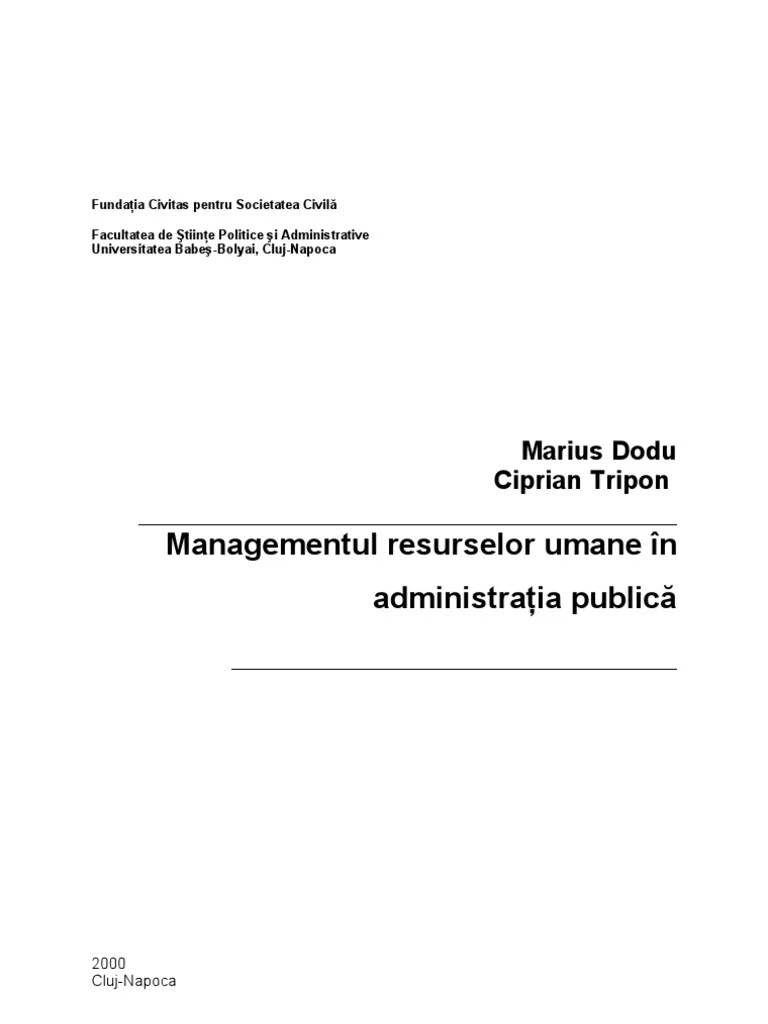 Managementul resurselor umane (mru) operează cu resursa cea mai importantă şi mai sensibilă a organizaţiei. Succesul oricărei organizaţii depinde hotărâtor de modul în care este înţeleasă şi motivată resursa umană. Am pus cap la cap o listă de 20 de cărți folositoare oricărei persoane care lucrează în domeniul resurselor umane și referințe către editura la care au apărut sau au fost comercializate. Una dintre cărțile de căpătâi pentru orice specialist în resurse umane este managementul resurselor umane, de michael armstrong. Managementul resurselor umane, ajunsa la a treia editie, raspunde in mod concret numeroaselor probleme cu care se confrunta un manager in resurse umane: Pe lângă informațiile de bază, despre ce reprezintă acest departament, care sunt strategiile și obiectivele generale, în acest manual de practică sunt menționate modalitățile de eficientizare a activității unei companii … Rolul acestor manageri este de gestionare a. 4) managementul resurselor umane este functia care planifica si recruteaza personalul, creand un climat organizational, propice dezvoltarii umane... Managementul resurselor umane presupune imbunatatirea continua a activitatii tuturor angajatilor in scopul realizarii misiunii si obiectivelor organizatiei, managerii trebuind sa asigure in permanenta un anumit echilibru cat mai stabil intre …