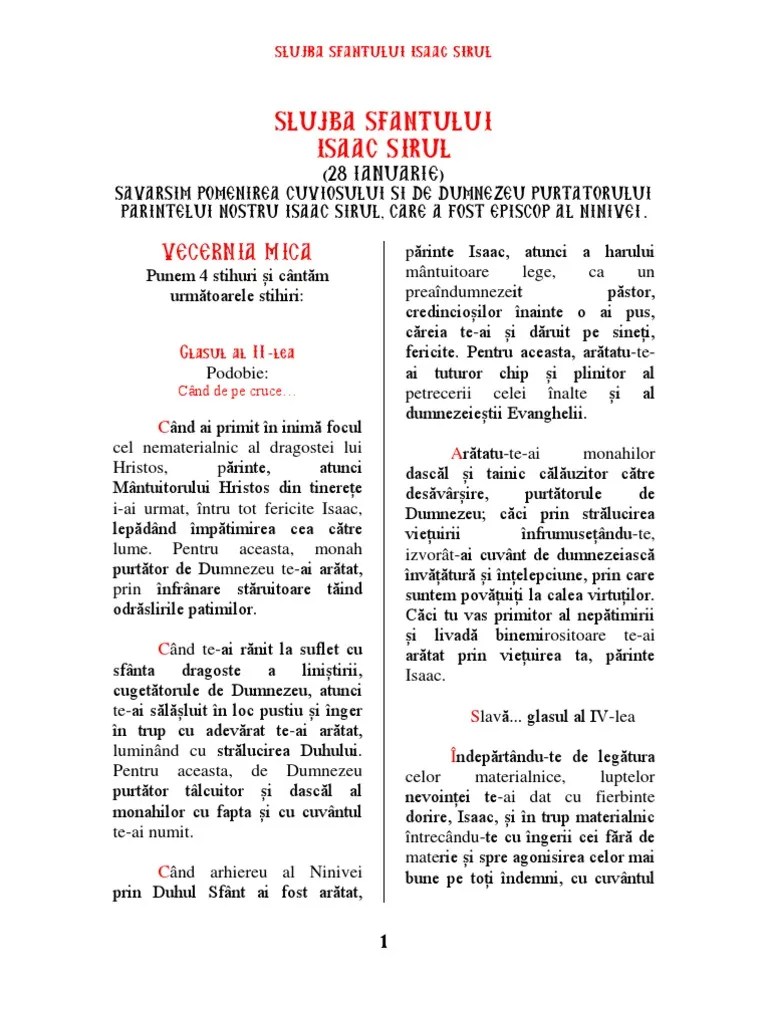 Facuta de sf ntul isaac sirul... Doamne iisuse hristoase, dumnezeul nostru, care cercetezi făptura ta, căruia îi sunt arătate patimile mele și neputința firii noastre omenești și tăria vrăjmașului nostru, tu însuți mă acoperă de răutatea lui, pentru că puterea lui este tare, iar firea noastră pătimașă și.. Doamne iisuse hristoase, dumnezeul nostru, care cercetezi făptura ta, căruia îi sunt arătate patimile mele și neputința firii noastre omenești și tăria vrăjmașului nostru, tu însuți mă acoperă de răutatea lui, pentru că puterea lui este tare, iar firea noastră pătimașă și.